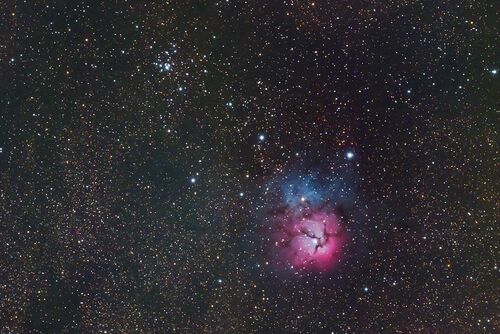 前回のエントリから前後しますが、8月17日はベランダから M20 「三裂星雲」を撮りました。あまり露光を稼げませんでしたがそこそこ写りました。三裂星雲の後はついでにHαで M16 「わし星雲」を撮りましたが、こちらは途中から雲が出て3コマしか撮れず。お盆…