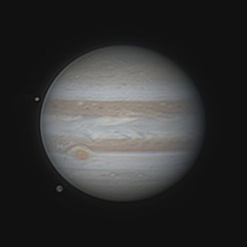前回のエントリにある通り、7月29日の夜は夜中から土星を撮って、その後木星が昇るのを待っていました。今年の木星はかなり北寄りに位置していて、南向きベランダからだとかなり高く昇ってからでないとベランダの壁*1に邪魔されて撮れません。撮影は3:20頃か…
